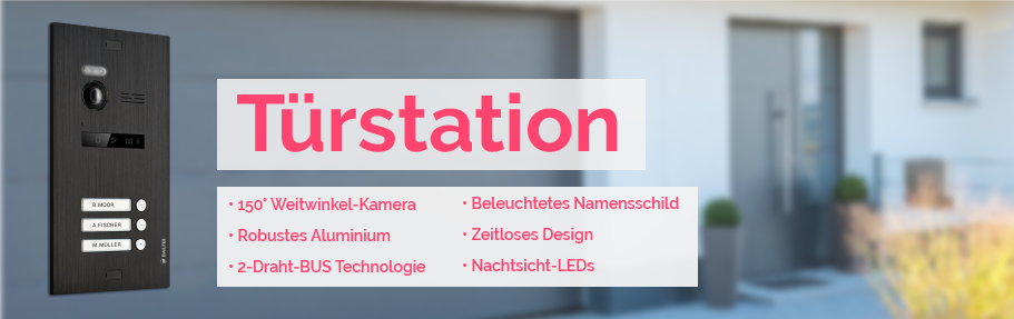 BALTER EVO Black Türstation für 3 Teilnehmer, 2-Draht BUS Technologie (Video / Audio / Strom), 150° Weitwinkelkamera
